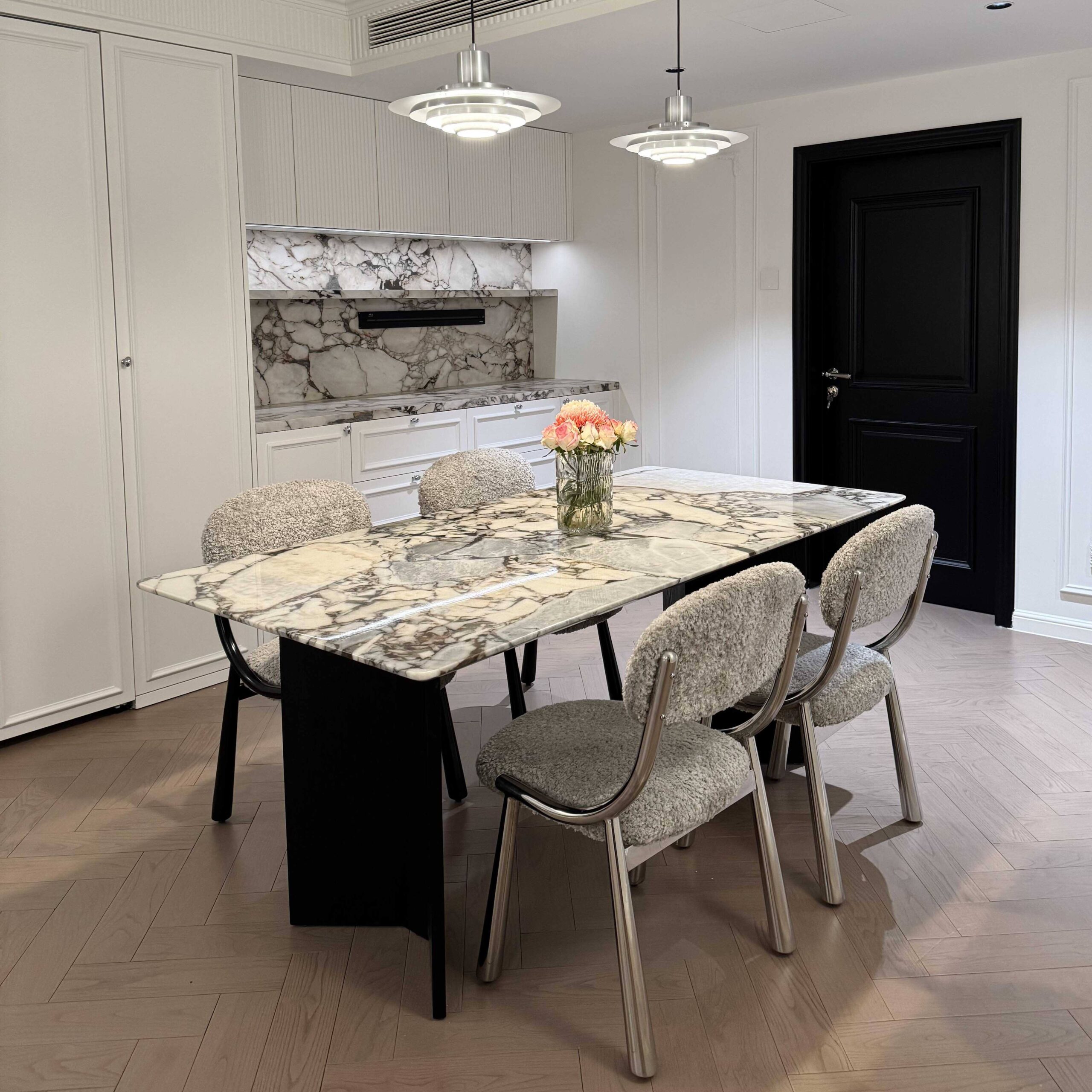 Elegant Italian-style blue natural marble dining table with fixed design, ideal for home, villa, and hotel dining spaces.