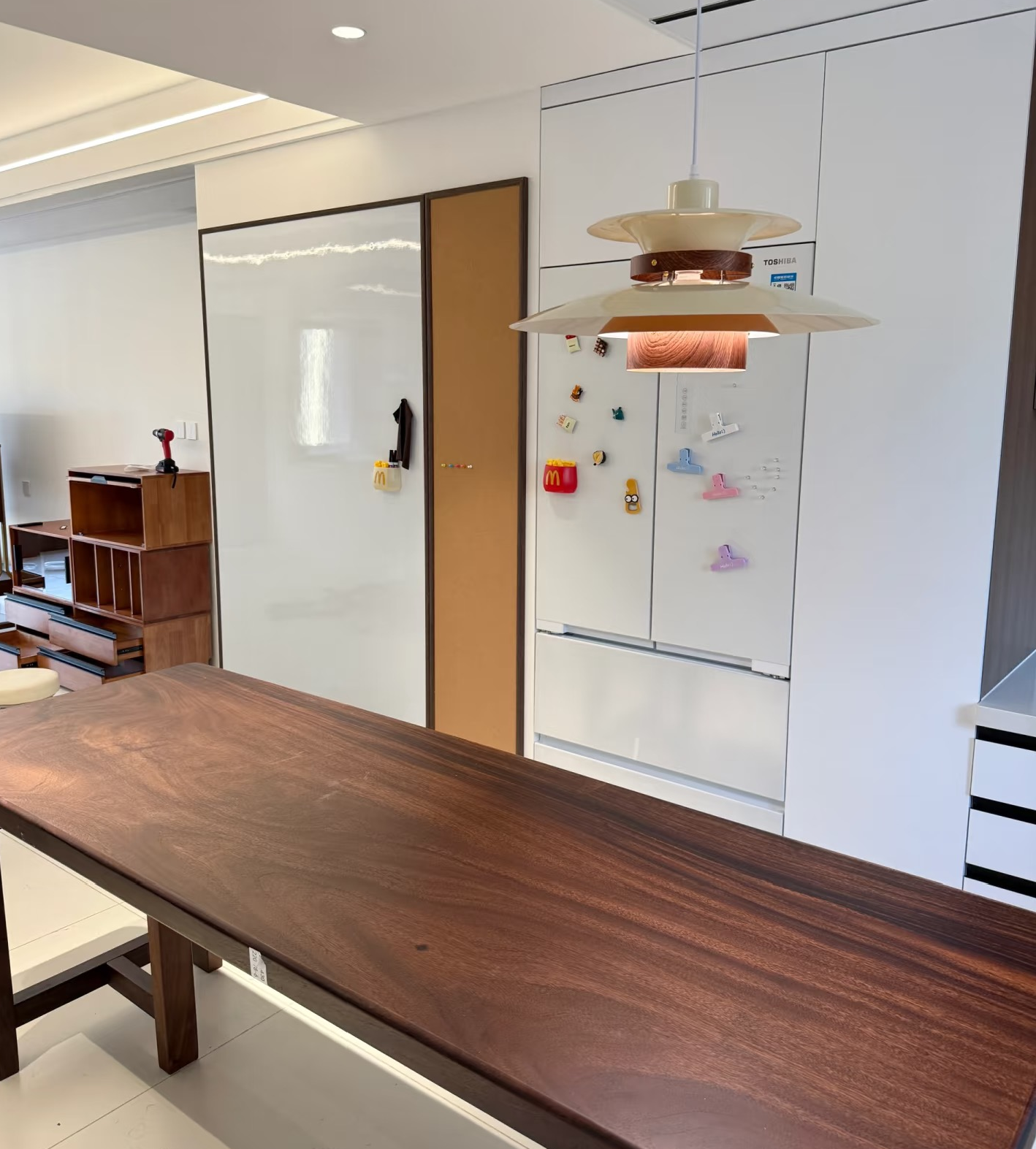 Factory-supplied Nordic walnut solid wood dining table with a minimalist rectangular design, perfect for compact apartments.