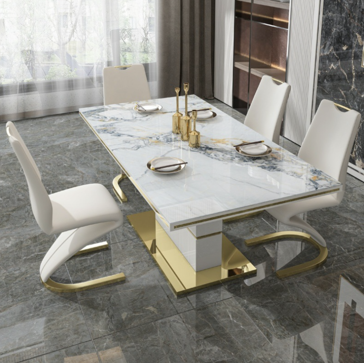 Modern factory-made sintered stone marble top dining table for 6–8 seaters, combining durability, luxury, and contemporary style.