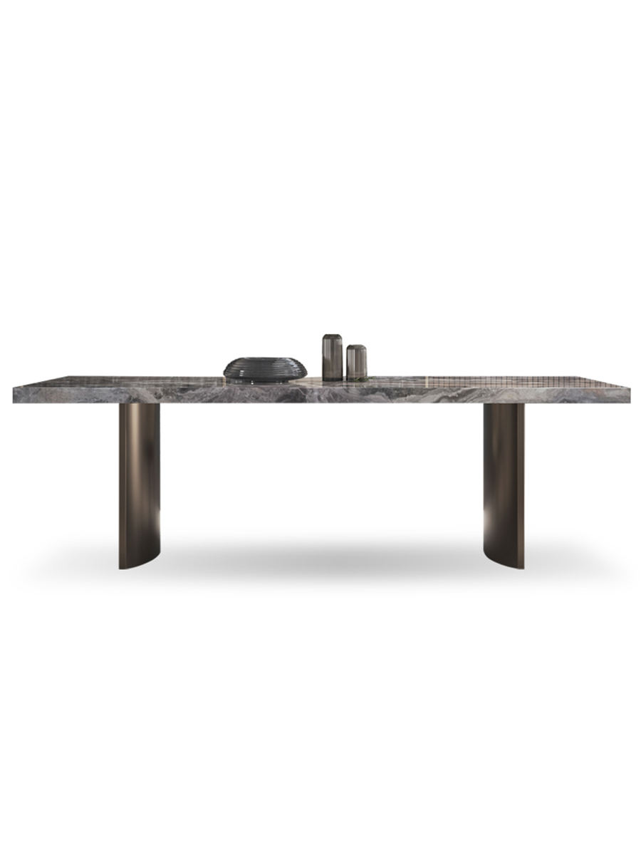 Elegant rectangular Venice brown marble dining table with matching chairs, crafted from premium Italian stone for luxury home interiors.